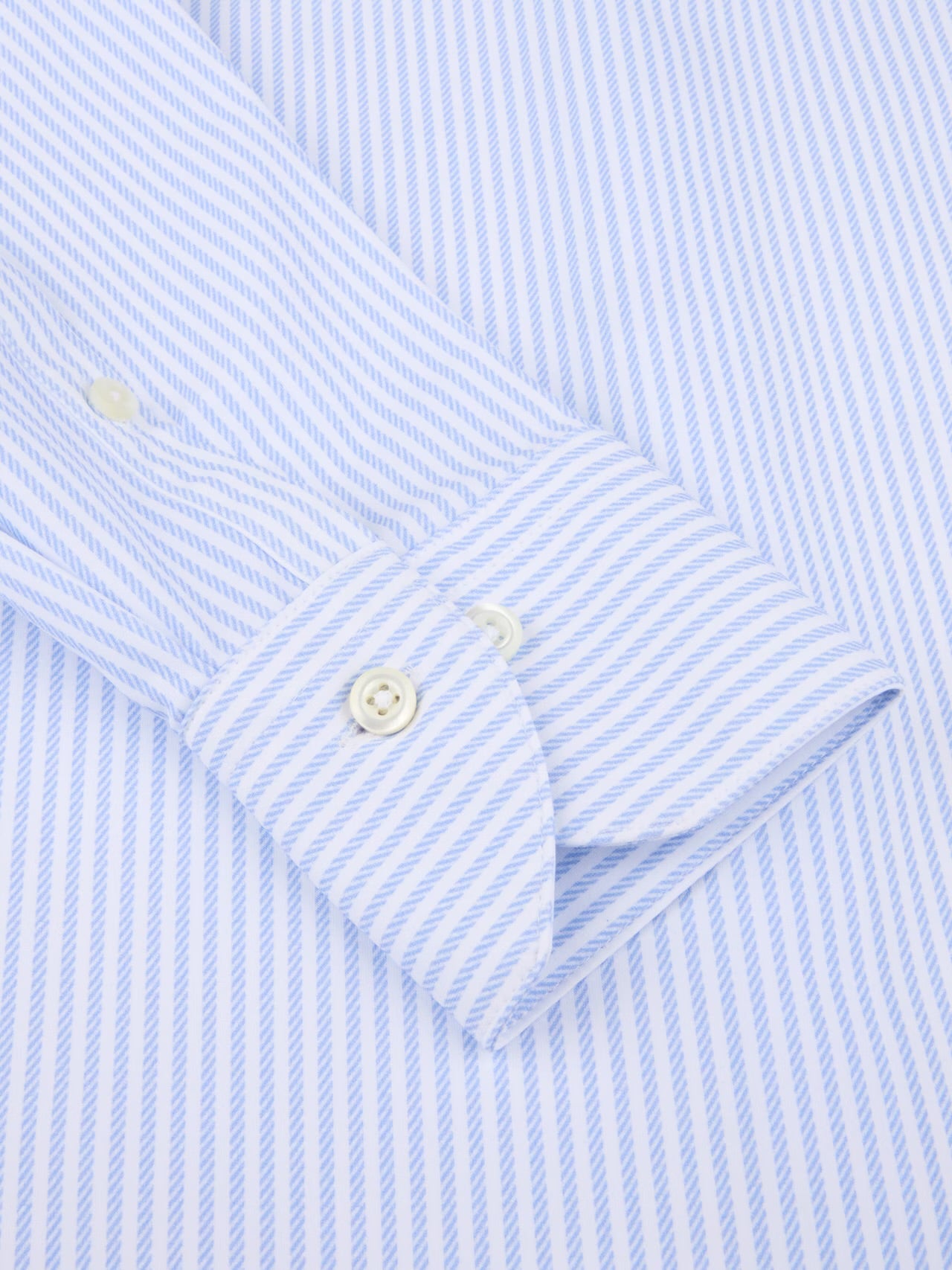 Denne stribede jerseyskjorte er fremstillet i polyamid og elastan og har en feminin pasform. Skjorten har perlemorsknapper, enkelte manchetter og en klassisk krave.