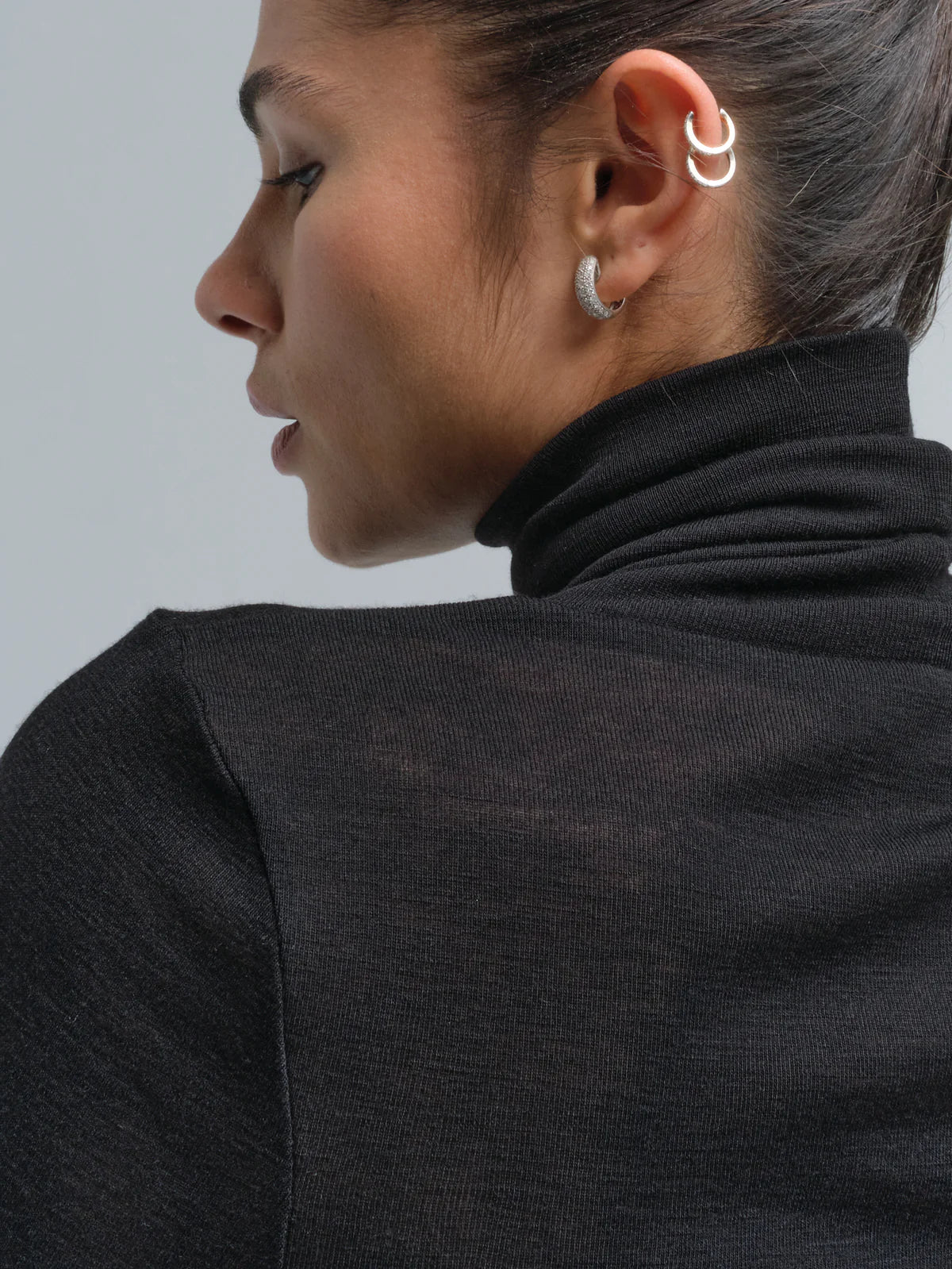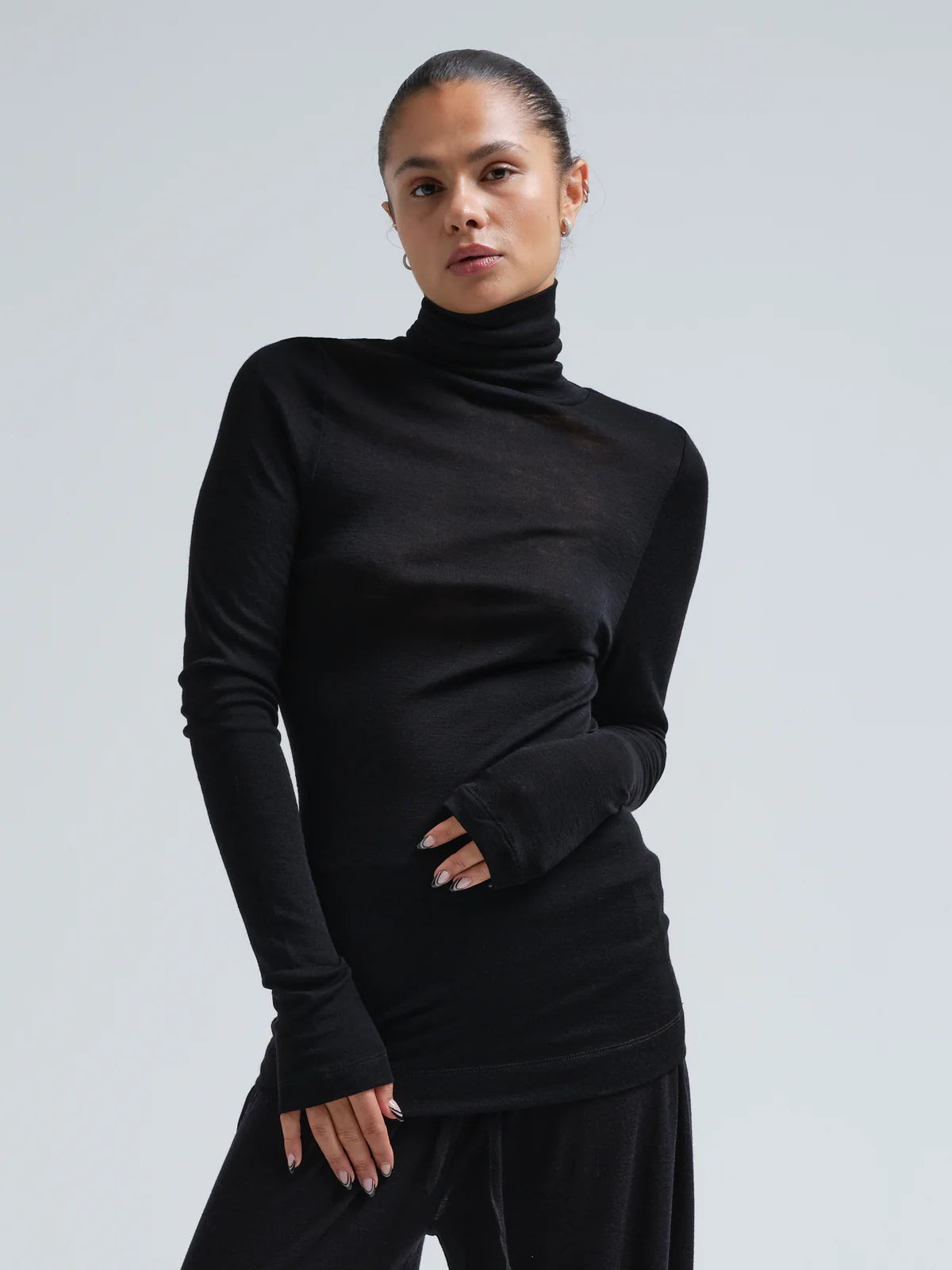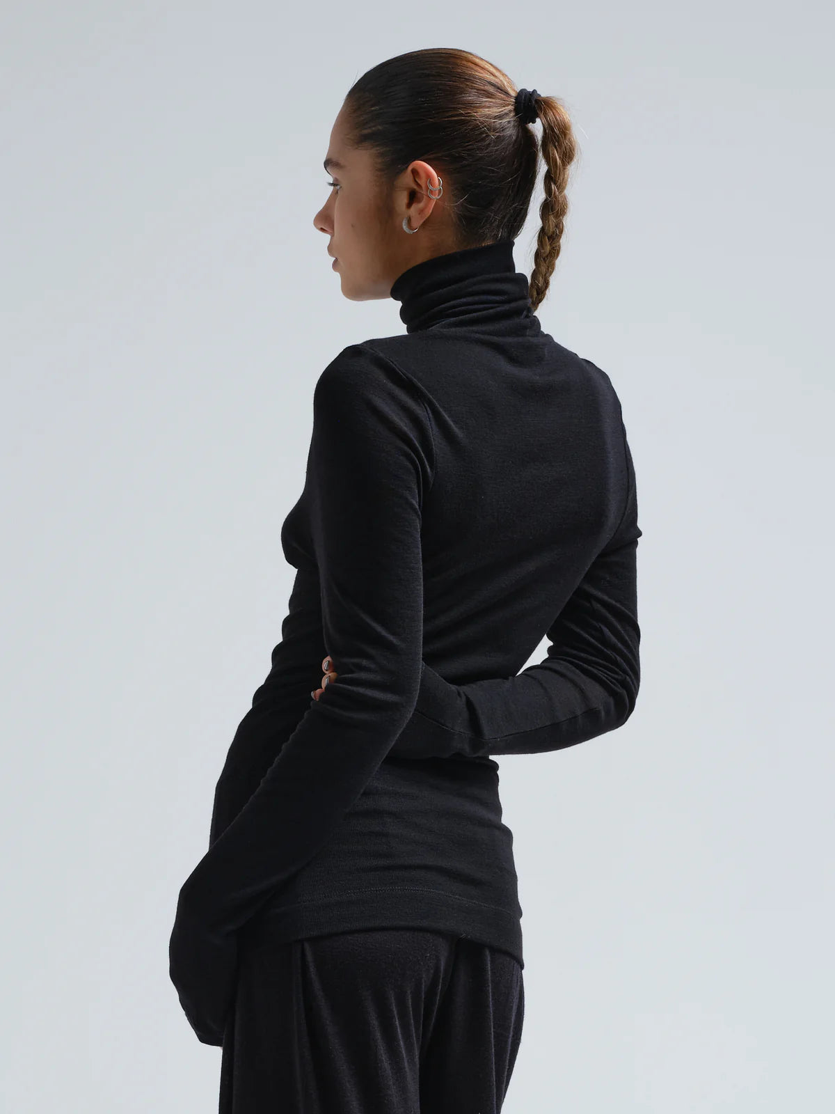 Rullekravebluse med lange ærmer.