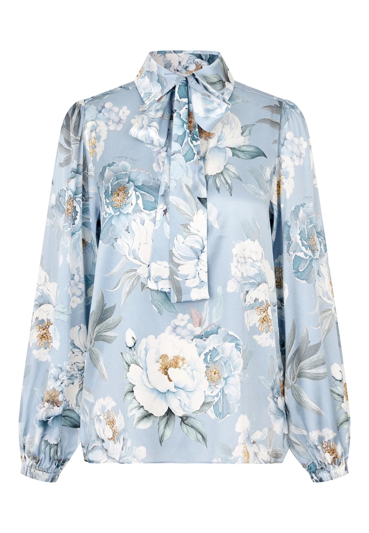 Alsidig og elegant – en silke-bluse med bindebånd i halsen er en garderobeklassiker. Denne version med et smukt pæonprint i blå nuancer har regular fit, fyldige ærmer og smalle manchetter. Bind båndet i en chic sløjfe eller lad det hænge løst for et mere afslappet look. Båndet kan let tages af for et mere enkelt look og fx bruges som bælte i et par lækre jeans.
